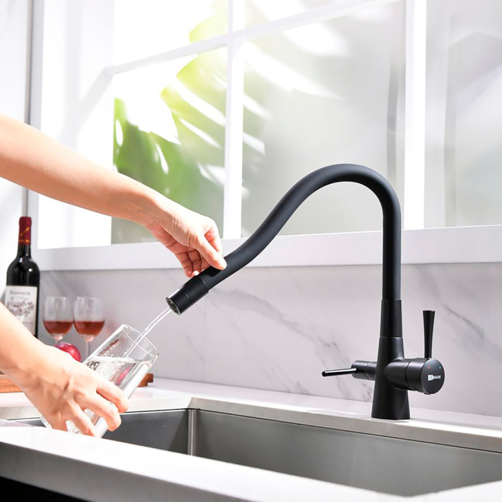 Խոհանոցի ծորակ ճկվող, ֆիլտրով LEMARK COMFORT LM3075BL Սև (ԿՈԴ 9243)