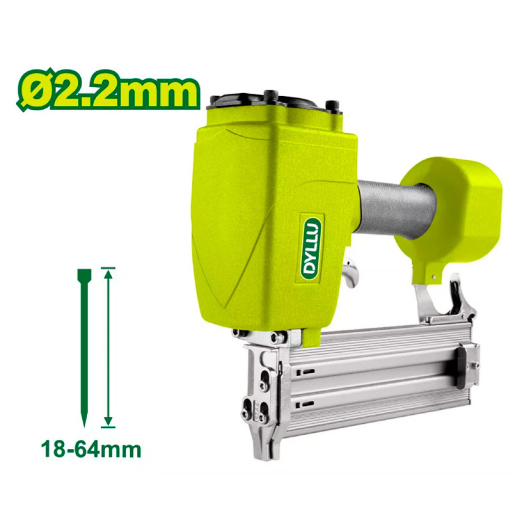 DYLLU DTBN3564 18-64մմ օդի ճնշմամբ աշխատող ստեպլերը կիրառվում է բետոնե մակերեսներին մեխեր խփելու համար։ Փամփշտակալի տարողունակությունը՝ 70 հատ։ Օդաճնշական կցորդիչ փաթեթում ներառված չէ։