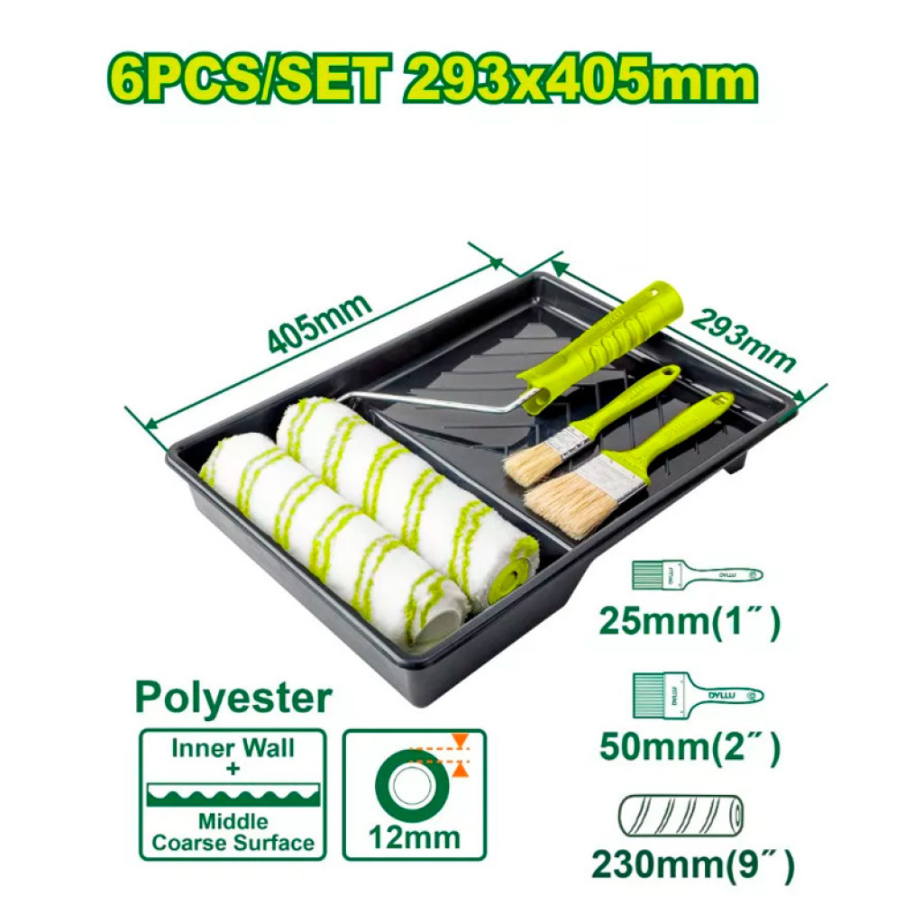 Փաթեթում | 2 հատ 230մմ ներկագլան (12մմ), 1 հատ 230մմ գլանի բռնիչ, 1 հատ 25մմ վրձին, 1 հատ 50մմ վրձին, 1 հատ 230մմ սկուտեղ |