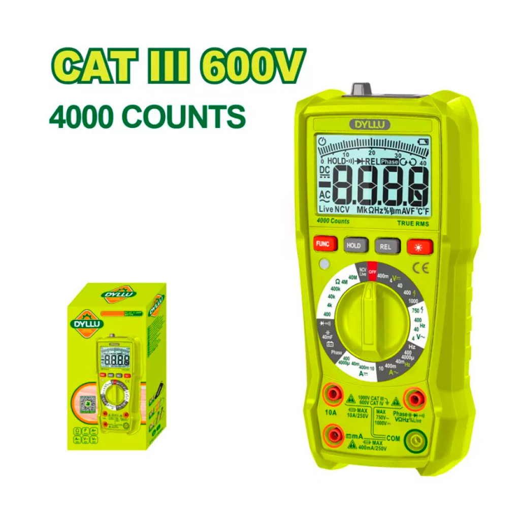 DYLLU DTDM2502 թվային մուլտիմետրը հագեցած է խելացի գործառույթներով, այդ թվում՝ ֆազային հաջորդականության չափում, դիոդային թեստավորում, ֆազերի թեստավորում, fազի և չեզոք գծի տարբերակում, լարման անհպում հայտնաբերում, «Առավելագույն/Նվազագույն» գործառույթ։ Իրական միջին քառակուսային արժեքը հաշվվում է 4000։ Տվյալները պահպանվում են LCD էկրան, որը ունի լուսավորման հնարավորություն։ Առկա է մարտկոցի ցածր լիցքավորման ցուցիչ։ Փաթեթում՝ 2 հատ LR6 AA մարտկոց։