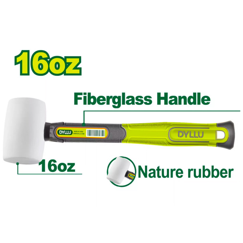 DYLLU DTHM7304 ռետինե մուրճը կիրառվում է լամինատ, փայտանյութեր տեղադրելիս, հարթեցնելիս։ Աշխատանքի ընթացքում գործիքի փափուկ հարվածային մասը կայծեր չի առաջացնում, աշխատանքային նյութի վրա քերծվածքներ և վնասվածքներ չի թողնում։ Հարվածային մասը բնական ռետինից է։ Նոր դիզայնով բռնակը հարմարավետ է, պատրաստված է ապակեթելքից։