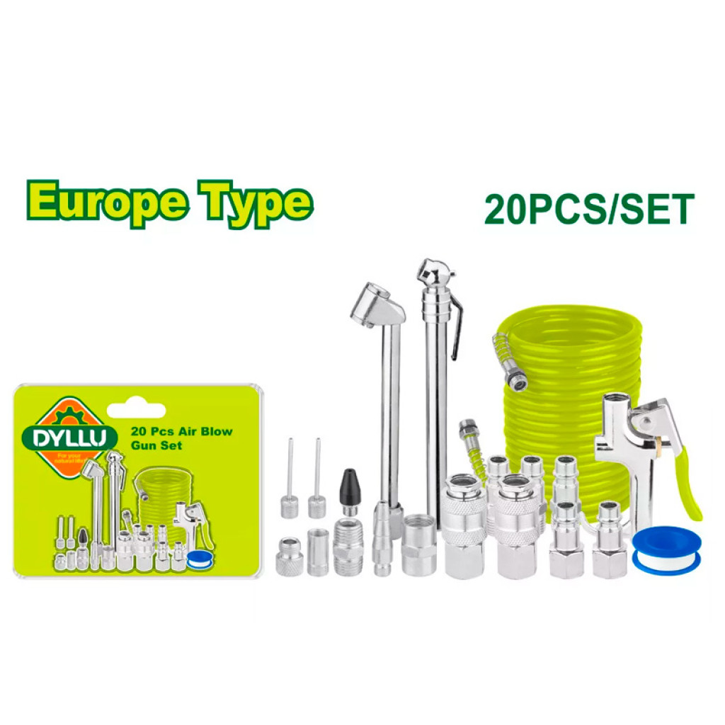 Փաթեթի բովանդակություն | 1 հատ օդամղիչ ատրճանակ, 1 հատ օդի խողովակ, 1 հատ PTFE ժապավեն, 1 հատ ռետինե սայր, 1 հատ կոնաձև գլխիկ, 1 հատ անվտանգության գլխիկ, 1 հատ փչող ատրճանակի ադապտեր, 1 հատ միակցիչ ադապտեր, 1 հատ կրկնակի պարուրակով միակցիչ, 2 հատ փչման ասեղ, 2 հատ ներքին պարուրակով կցորդիչ, 2 հատ ներքին պարուրակով խցան, 3 հատ արտաքին պարուրակով խցան, 1 հատ կրկնակի կցորդիչ՝ անվադողերի առանձնացման համար։ |