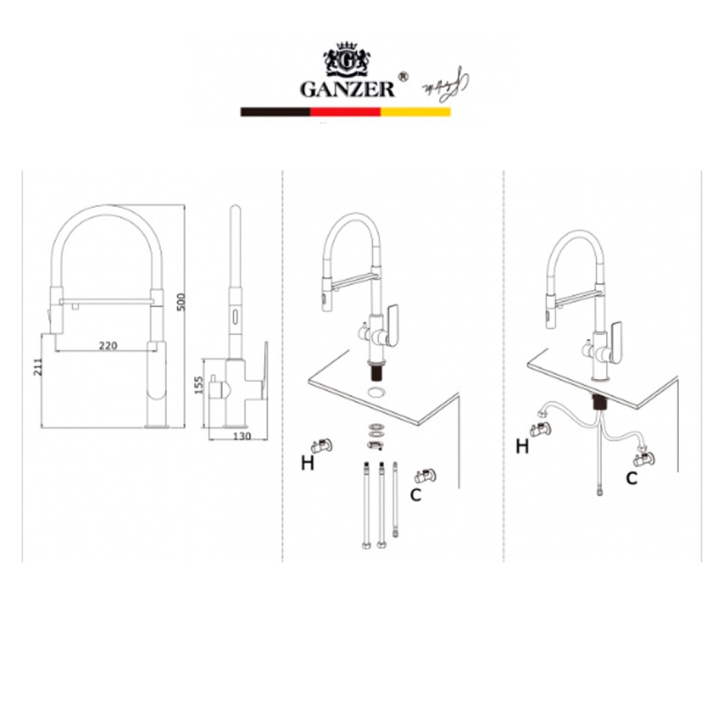 Խոհանոցի ծորակ GANZER 12127-C Սև (ԿՈԴ 17367)