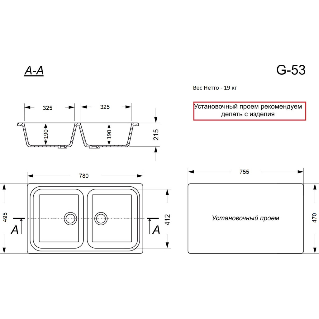 Խոհանոցի լվացարան GranAlliance G-53 Մուգ մոխրագույն, 780х495х215 մմ (ԿՈԴ 13078)