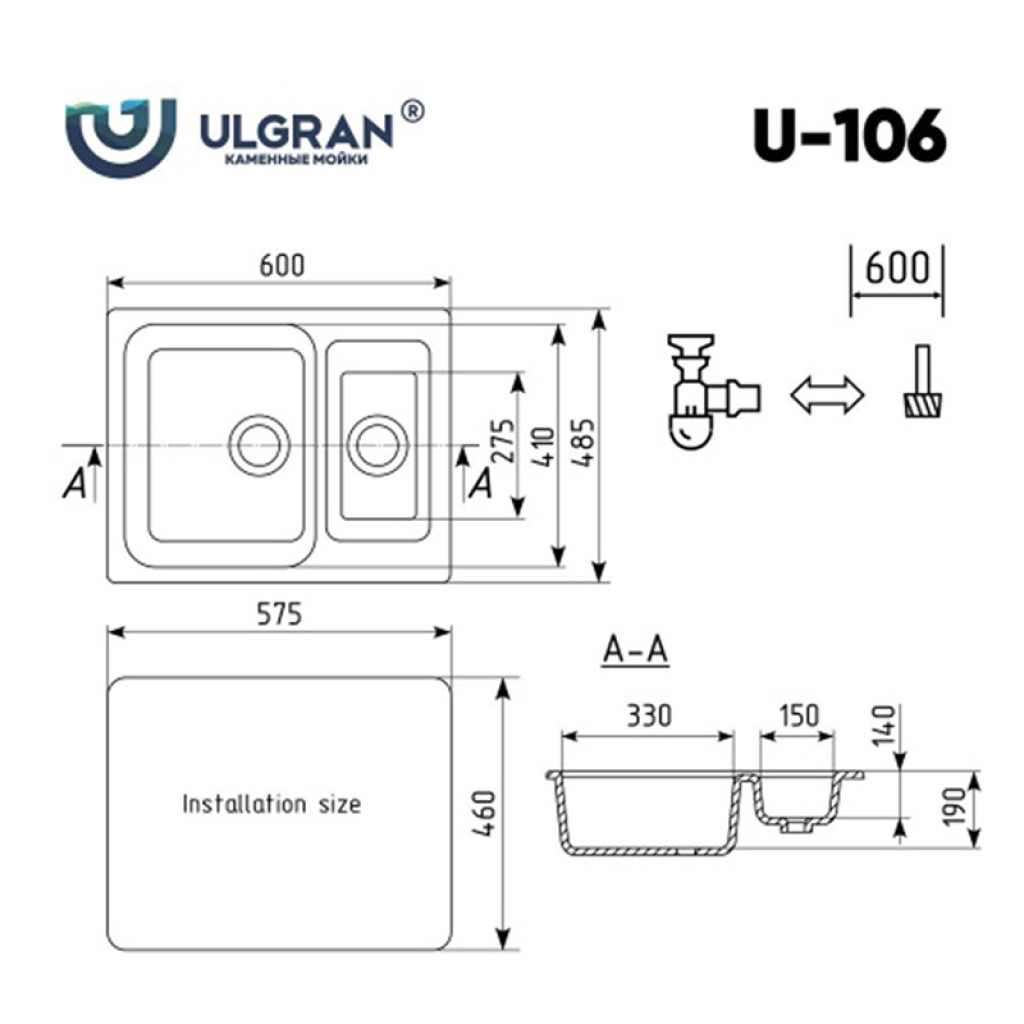 ULGRAN լվացարանները արտադրվում են ժամանակակից ավտոմատացված սարքավորումների միջոցով, ունեն համեմատաբար թեթև քաշ և բարձր ամրություն, որն ապահովում է որակի և հարմարավետության բարձր մակարդակ: ULGRAN U-106 լվացարանը երկկողմանի է, որը բաղկացած է մեկ հիմնական լվացարանից և կողային քամոցից, որտեղ կարելի է լվանալ, հալեցնել սառեցված սնունդը, չորացնել ամանեղենը և այլն։ Տրվում է գործարանային 1 տարի երաշխիք, իսկ ծառայության ժամկետը՝ ավելի քան 10 տարի։