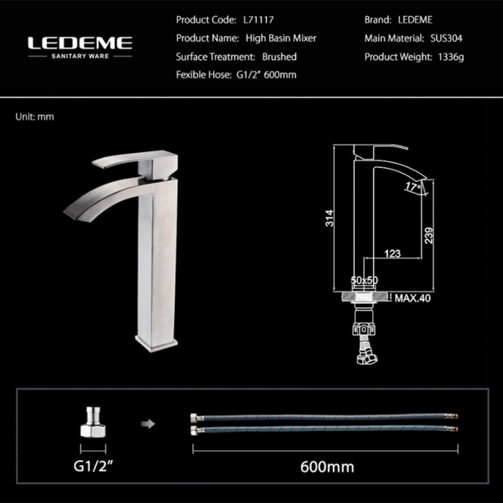 Լվացարանի ծորակ LEDEME RL71117 Մատվի (ԿՈԴ 5584)