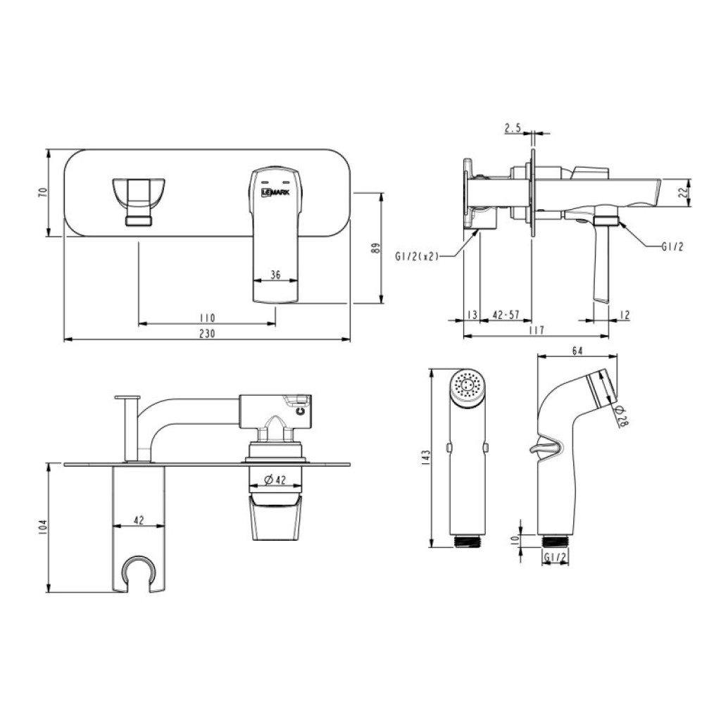 Ներկառուցվող խառնիչ հիգիենիկ ցնցուղով Lemark Ursus LM7220BL Սև (ԿՈԴ 9440)