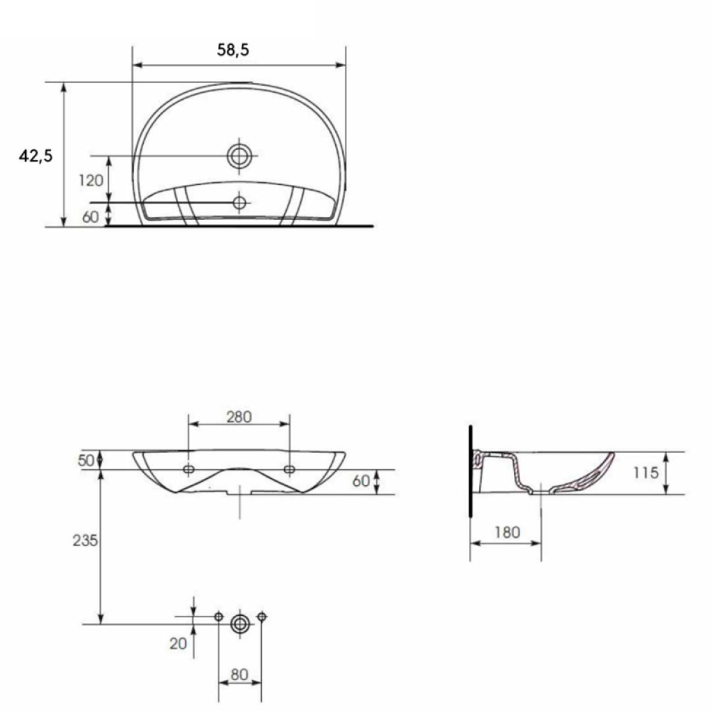 Լվացարան MITO RED 60 WB/Ped TK001-006, K09-009 585x425x820 մմ Սպիտակ (ԿՈԴ 12962)