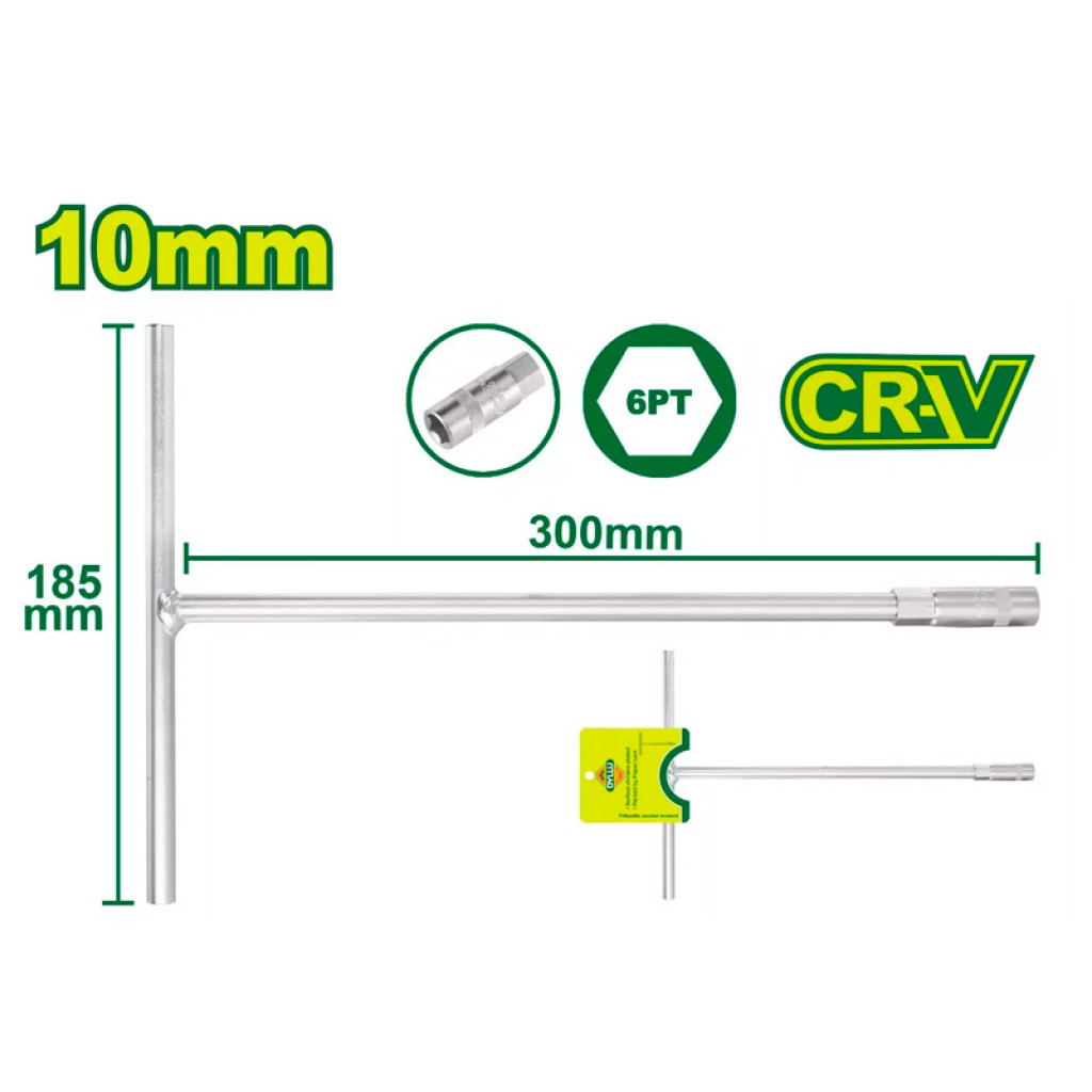 T-աձև բանալին պատրաստված է քրոմ-վանադիումային պողպատից։ Չափը՝ 10մմ։ Երկարությունը՝ 185x300մմ։