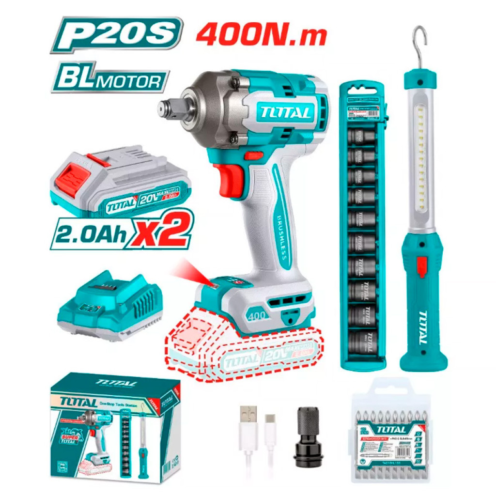 Փաթեթի բովանդակություն | 1 հատ անլար հարվածային գայկավյորտ (TIWLI2040), 1 հատ աշխատանքային լամպ (TWLI35261), 1 հատ լիցքավորման USB մալուխ, 10 հատ 1/2" հարվածային գլխիկ, 1 հատ 1/2" - 1/4" վեցանկյուն ադապտեր |