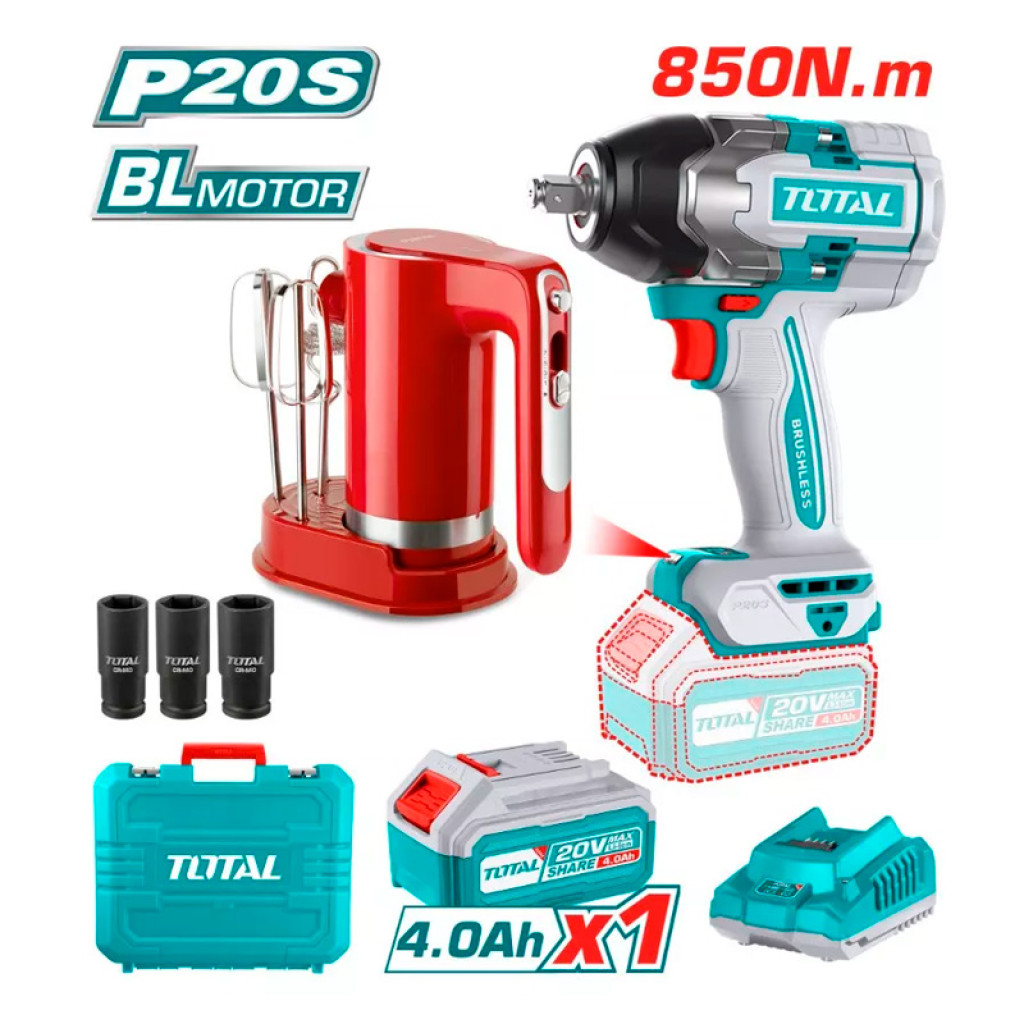 Փաթեթի բովանդակություն | 1 հատ լիթիում-իոնային պտուտակադարձիչ (TIWLI20851) 1 հատ անլար ձեռքի խառնիչ (TMK006H), 1 x 4.0Ah մարտկոց (TFBLI20021), 1 լիցքավորիչ (TFCLI2001), 3 խորը վարդակներ (22,24,27 մմ), 1 գոտի սեղմակ 2 ճկուն մետաղալարեր 2 հատ կեռիկներ, Լիցքավորման լարումը` 220-240V~50/60Hz |