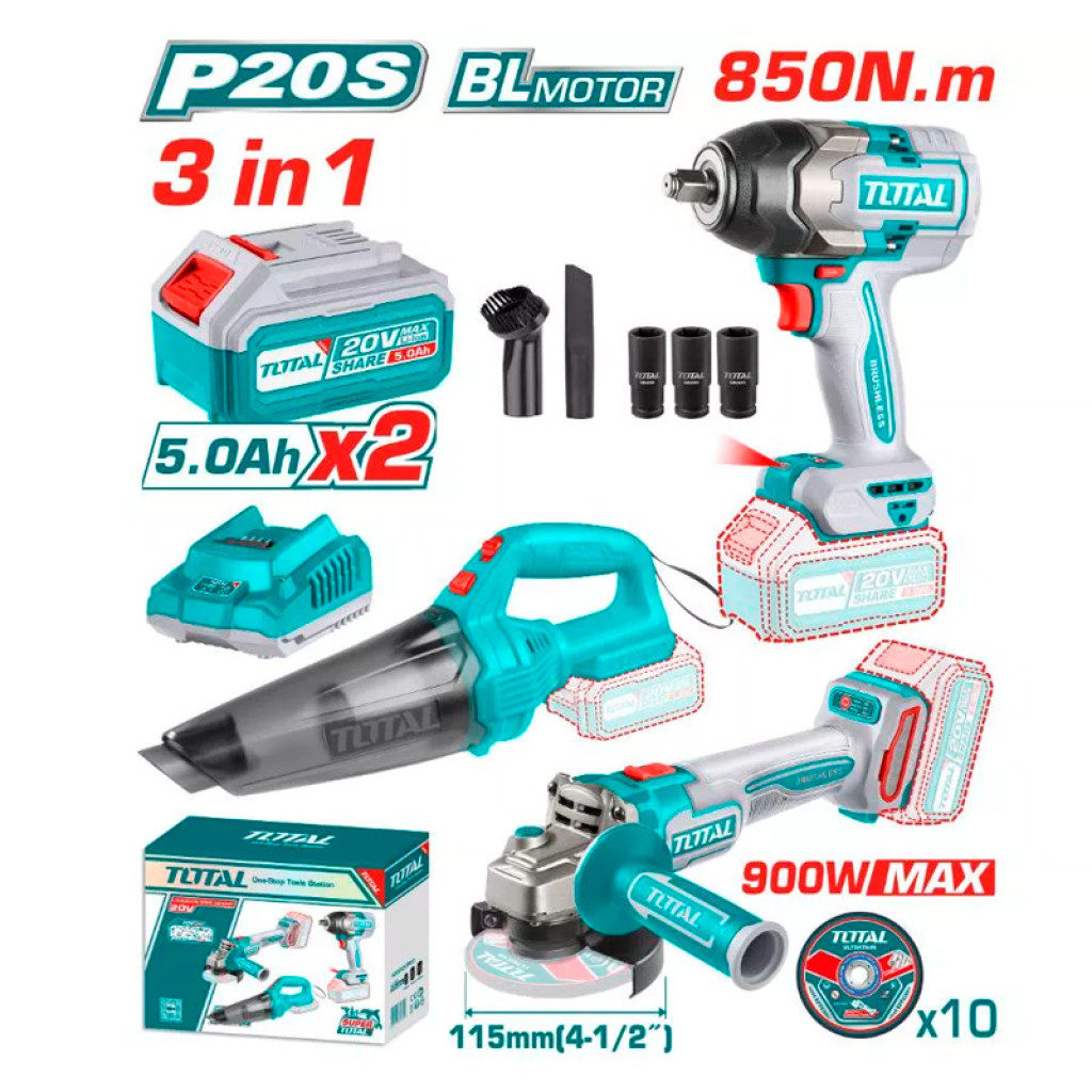 Փաթեթի բովանդակություն | 1 հատ Անլար հարվածային գայկավյորտ (TIWLI20851) 1 հատ Անլար անկյունային ԱՀՄ (TAGLI21154) 1 հատ Անլար փոշեկուլ (TVLI201261) 3 հատ խորը վարդակներ (22,24,27 մմ) 1 հատ գոտի սեղմակ 1 Հղկող մետաղ կտրող սկավառակ (10 հատ) 1 հատ ճեղքվածք վարդակ 1 հատ փոշու խոզանակ 2 հատ 5.0Ah մարտկոց (TFBLI20531) 1 հատ լիցքավորիչ (TFCLI2001) Լիցքավորման վոլտ՝ 220-240V~50/60Հց Փաթեթավորված գունավոր տուփով |