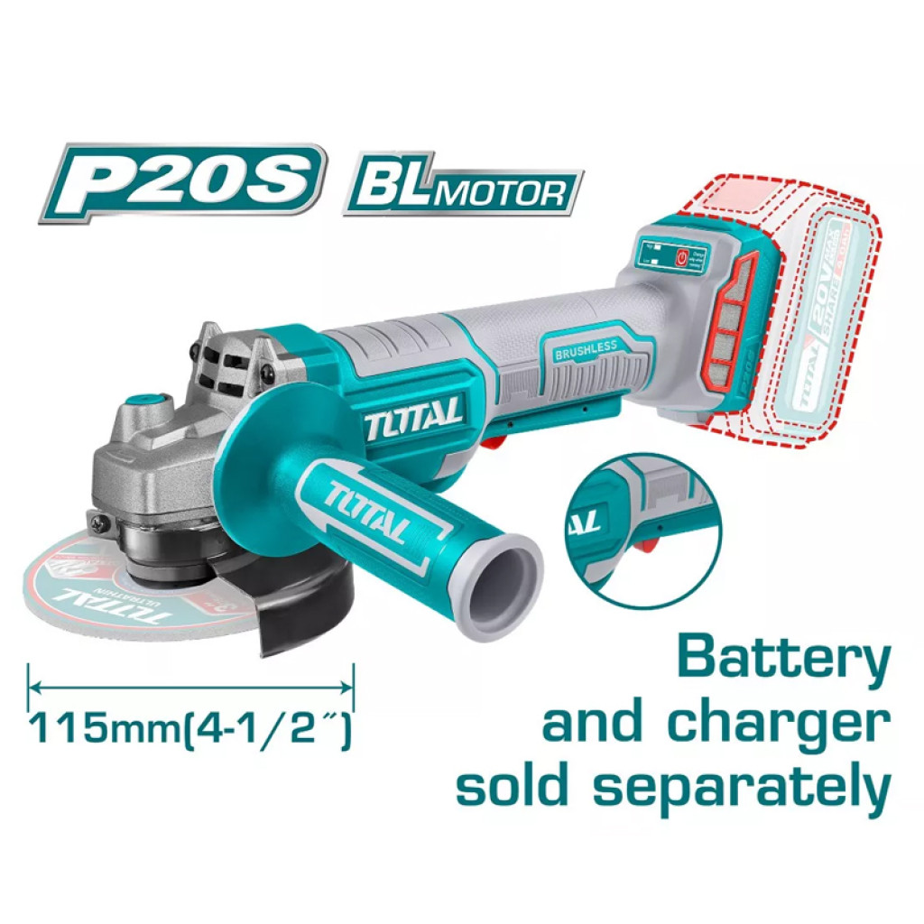 Անկյունային հղկող մեքենա (Բալգարկա) մարտկոցային TOTAL TAGLI211156 20Վ 115մմ (ԿՈԴ 13786)
