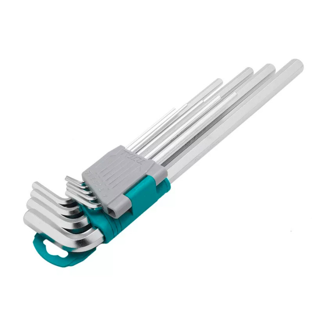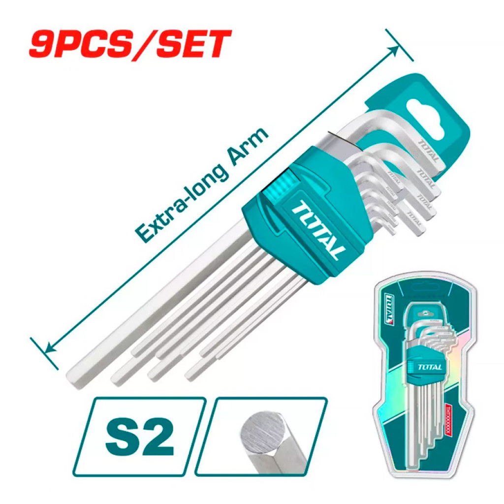 Իմբուսի բանալիների հավաքածու 9 հատ : TOTAL THT106192 - ն օգտագործվում է վեցանկյուն վարդակով ամրացումները պտուտակելու և անջատելու համար : Բանալիների երկարաձգված ձևը օգնում է աշխատանքներ իրականացնել անգամ դժվարամատչելի վայրերում : Գործիքները պատրաստված են քրոմ վանադիումի պողպատից ՝ ամրության և երկար շահագործման համար :