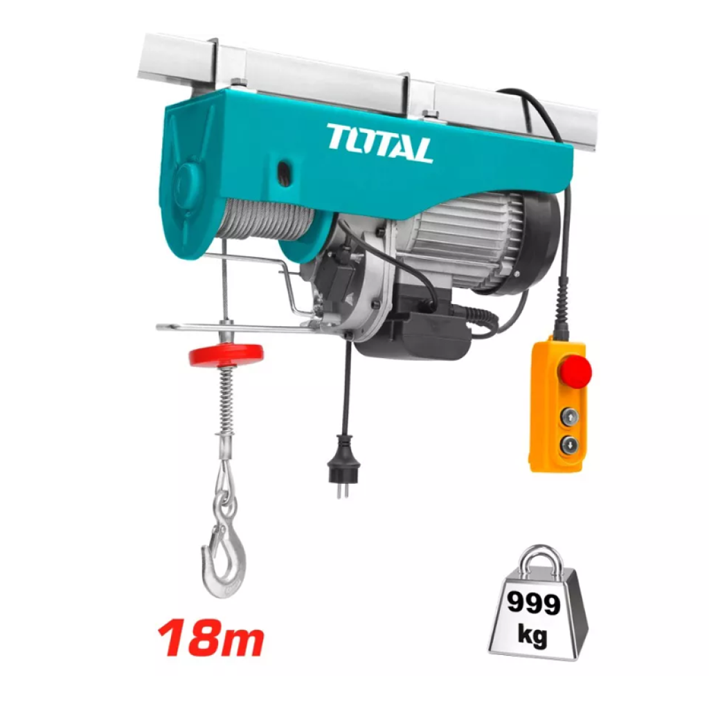 TOTAL TLH116102 էլեկտրական տելֆերը բարձրացնող սարք է, որը նախատեսված է մեկ գծով մինչև 500 կգ և կրկնակի գծով մինչև 999 կգ բեռներ բարձրացնելու համար։ Առավելագույն բարձրությունը մեկ գծով՝ 18 մ, կրկնակի գծով՝ 9 մ։ Բարձրացման արագությունը մեկ գծով՝ 10 մ/ր, երկու գծով՝ 5 մ/ր։ Տելֆերը հագեցած է վթարային կանգառի կոճակով և ջերմային պաշտպանության համակարգով, ինչը բարձրացնում է շահագործման անվտանգությունը։