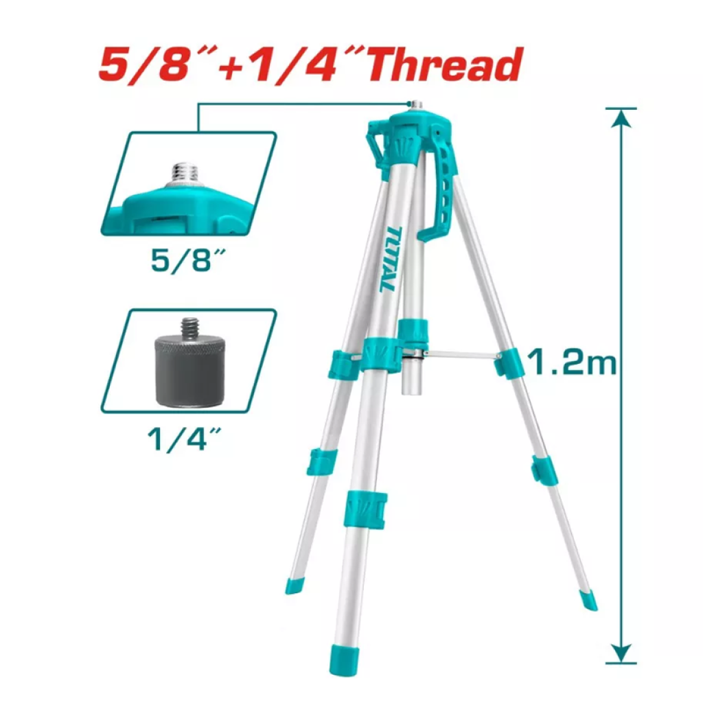TOTAL ապրանքանիշի լազերային հարթաչափի շտատիվը համապատասխանում է նույն ապրանքանիշի TLL156508, TLL306505, TLL305205 հարթաչափերին։ Ալյումինե շտատիվի բարձրությունը 1․2 մ է, կարգավորվող է։