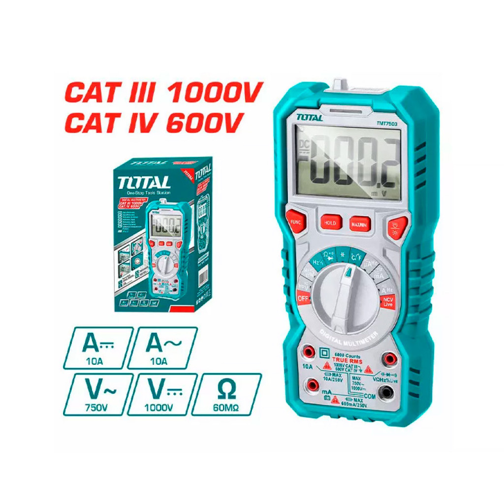 - TOTAL TMT47504 թվային մուլտիմետրը նախատեսված է լարման, հոսանքի և դիմադրության չափման համար :