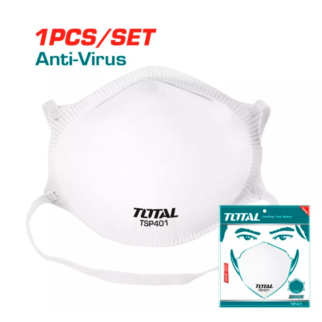 TOTAL TSP401 - ը նախատեսված է շնչառական համակարգը աերոզոլներից և փոշուց պաշտպանելու համար : Պատրաստված է պոլիպրոպիլենային զտիչ նյութից , որը հիպոալերգեն է և չի խանգարում շնչառությանը : Այն նպաստում է հարմարավետ օգտագործմանը : Մոդելը ունի կարգավորելի ռետինացված ականջակալ :