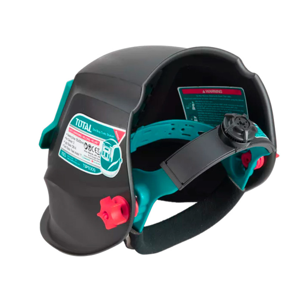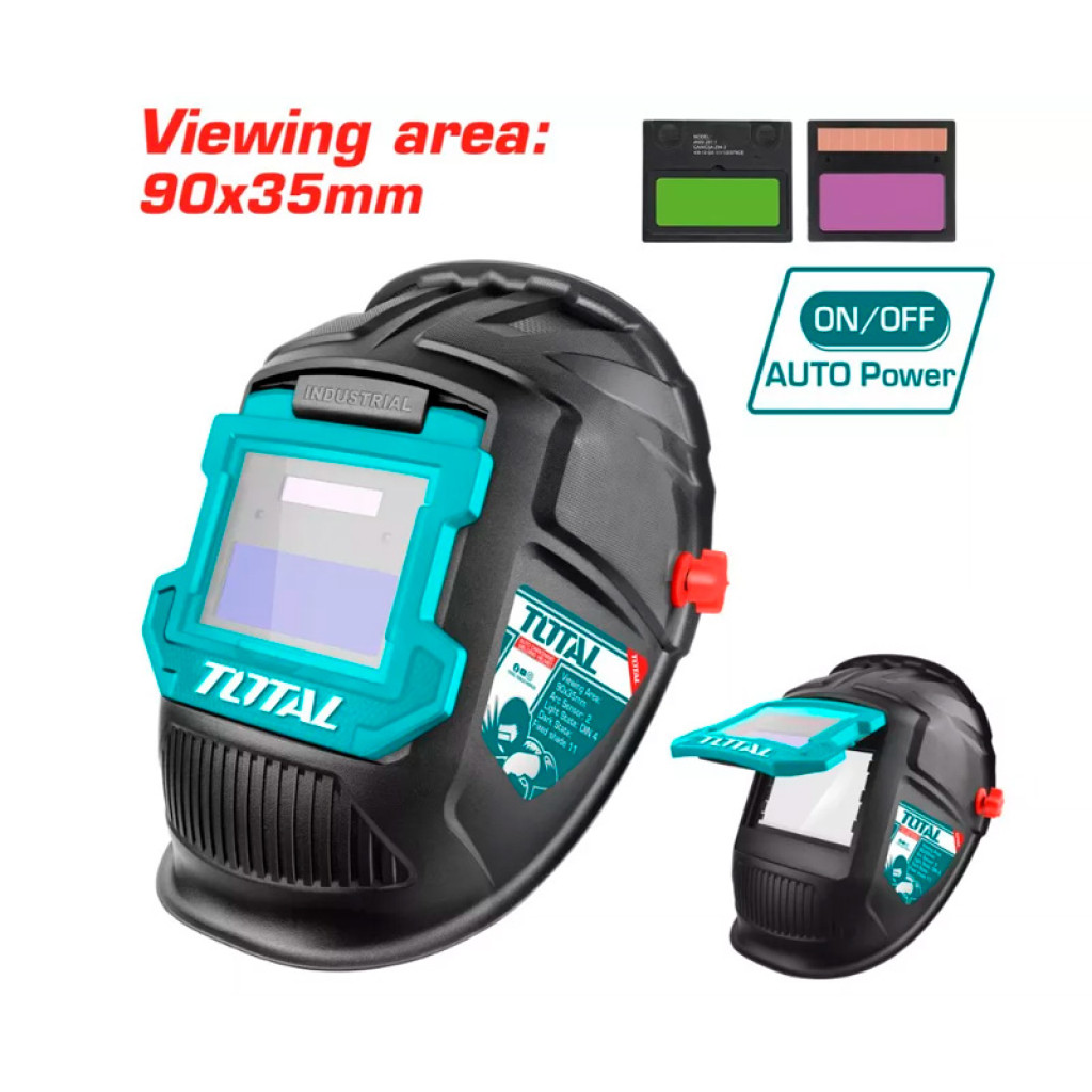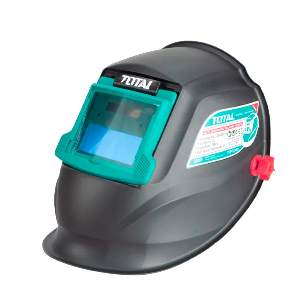 TOTAL TSP9309 եռակցման սաղավարտը օգտագործվում է եռակցման ժամանակ՝ դեմքը և աչքերը ուլտրամանուշակագույն ճառագայթումից, կոշտ լույսի և հալած մետաղի ցայտումներից պաշտպանելու համար : Այն օգտագործվում է հոսանքների լայն տիրույթում աշխատելու համար՝ օգտագործելով զոդման տարբեր տեխնոլոգիական գործընթացներ : Դիտման մեծ պատուհանը եռակցողին ապահովում է եռակցվող օբյեկտի գերազանց տեսանելիություն : Հղկման ռեժիմը թույլ է տալիս արգելափակել լույսի զտիչի մթացումը՝ դիմակը որպես պաշտպանիչ վահան օգտագործելու համար, երբ աշխատում եք անկյունային հղկիչով / հղկող գործիքով :Էլեկտրական եռակցման դիմակ ավտոմատ մգեցմամբ TOTAL TSP9309 (ԿՈԴ 15169)