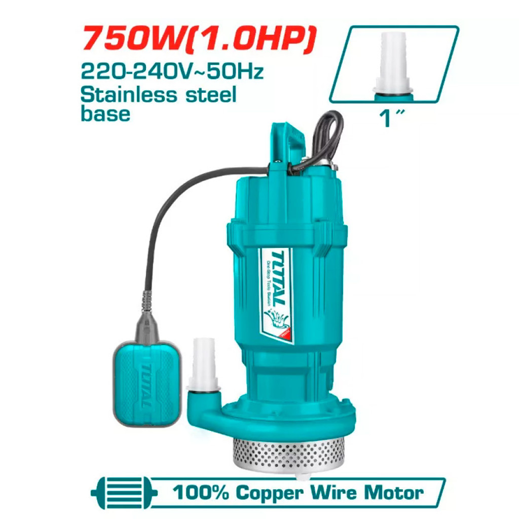 Սուզվող պոմպը նախատեսված է պայմանական կեղտոտ ջրի հետ աշխատելու համար : Հեղուկի մղման հնարավորությունը 7.5 մ 3 / ժ արագությամբ : Լողացող անջատիչը բացառում է չոր աշխատանքը և կանխում պոմպի վնասումը : Բռնիչը տրամադրվում է հեշտ տեղափոխելիության համար :Հորի պոմպ TOTAL TWP67506 750W (ԿՈԴ 15818)