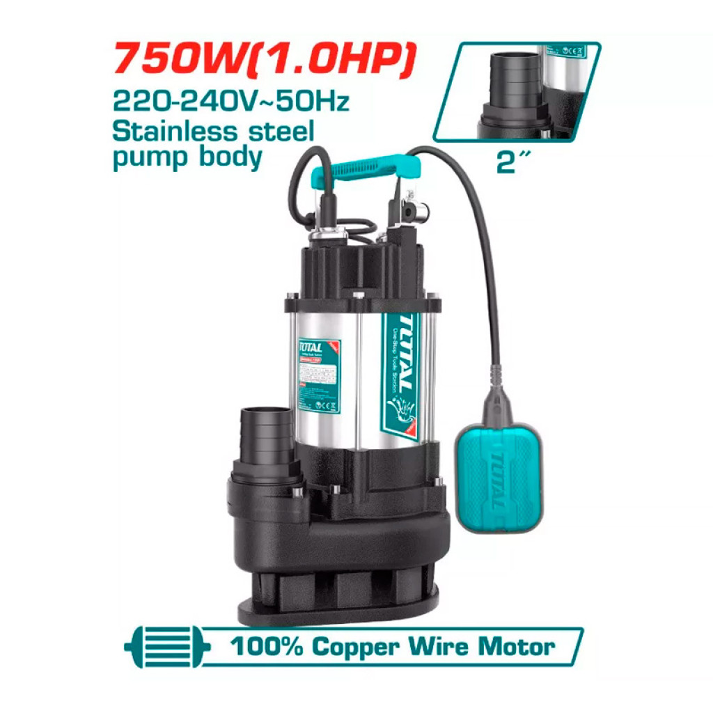 Սուզվող պոմպը նախատեսված է պայմանական կեղտոտ ջրի հետ աշխատելու համար : Հեղուկի մղման հնարավորությունը 21 մ 3 / ժ արագությամբ : Լողացող անջատիչը բացառում է չոր աշխատանքը և կանխում պոմպի վնասումը : Բռնիչը տրամադրվում է հեշտ տեղափոխելիության համար :Հորի պոմպ կեղտաջրերի TOTAL TWP775016 (ԿՈԴ 15816)
