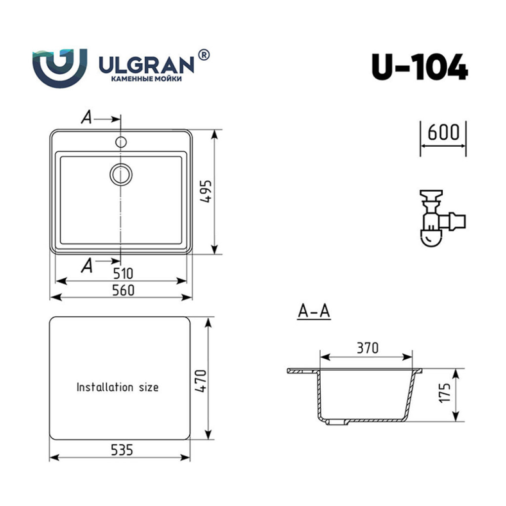ULGRAN  լվացարանները արտադրվում են ժամանակակից ավտոմատացված սարքավորումների միջոցով, ունեն համեմատաբար թեթև քաշ և բարձր ամրություն, որն ապահովում է որակի և հարմարավետության բարձր մակարդակ: ULGRAN U-104 լվացարանը՝ մեկ տեղանոց ընդարձակ լվացարան է, որն ունի ժամանակակից դիզայն և հարմարավետ կիրառություն։ Տրվում է գործարանային 1 տարի երաշխիք, իսկ ծառայության ժամկետը՝ ավելի քան 10 տարի։