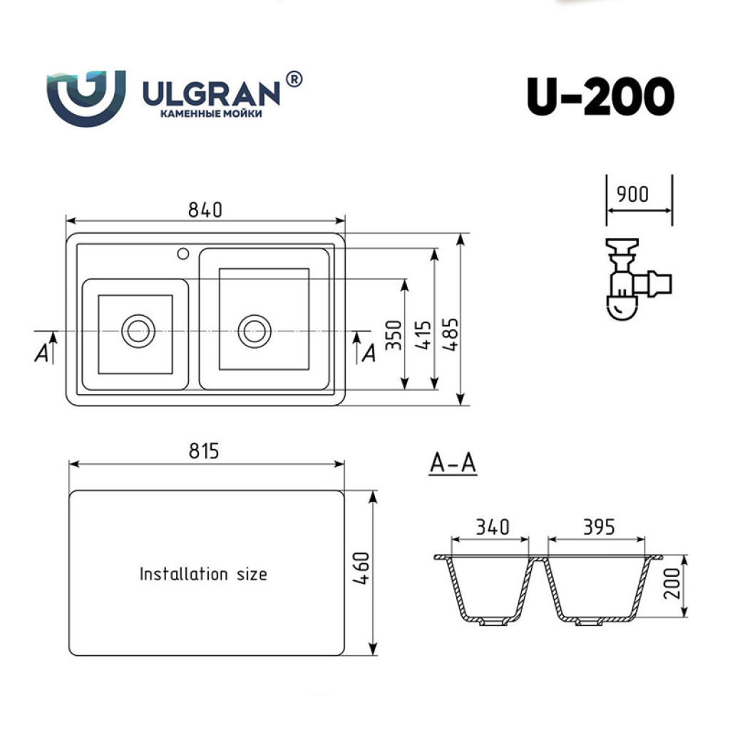 խոհանոցի լվացարան ULGRAN U-200-344,Ուլտրա սև, 840 х 485 մմ (ԿՈԴ 13008)