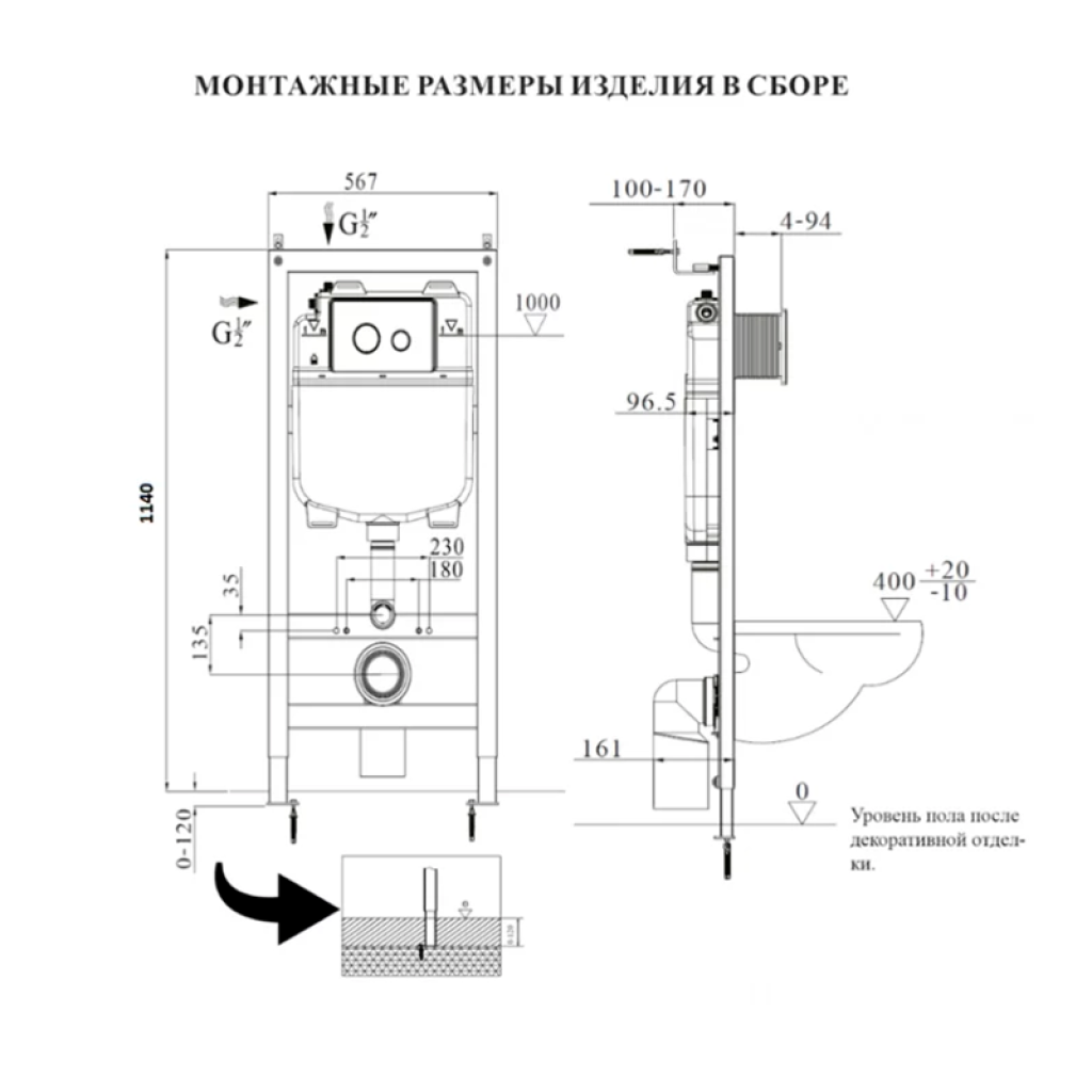 Տեղադրման տեսակ | Պատին, կախովի զուգարանի համար |